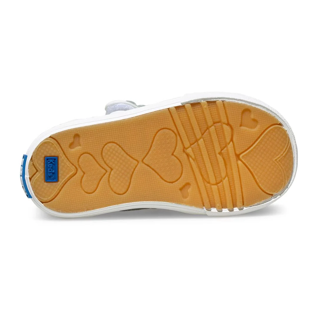 From playground to party time, Keds’ Ella is a not-so-plain Mary Jane. Featuring a sweet flower detail on the convenient hook & loop closure, plus a memory foam footbed and deep flex grooves making them as comfy as a sneaker, but perfect for parties!