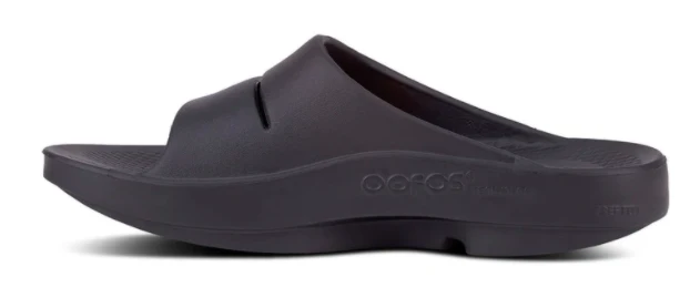 The OOahh Slide features revolutionary OOfoam™ technology that absorbs 37% more impact than traditional footwear foam materials to reduce the stress on your feet and joints. This technology aids in the recovery process and creates an incredibly comfortable sandal you can wear anywhere.
