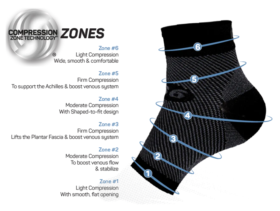 The FS6® Performance Foot Sleeve is the #1 selling brace in the running market for Plantar Fasciitis. it is incredibly effective at relieving the pain of Plantar Fasciitis, chronic arch and heel pain, and swelling in the foot. Compression Zone Technology® knit into this amazing foot sleeve provides medical grade orthopedic support to the foot structure and the Achilles tendon. Graduated compression improves circulation and reduces swelling, all in an ultra-comfortable moisture-wicking foot sleeve that can be worn under socks and inside shoes. FS6® can be used for resting therapy or overnight and gives morning pain relief from the first day. Worn as a pair, during your run or sport, FS6® functions as a strengthening support and Plantar Fasciitis preventative.